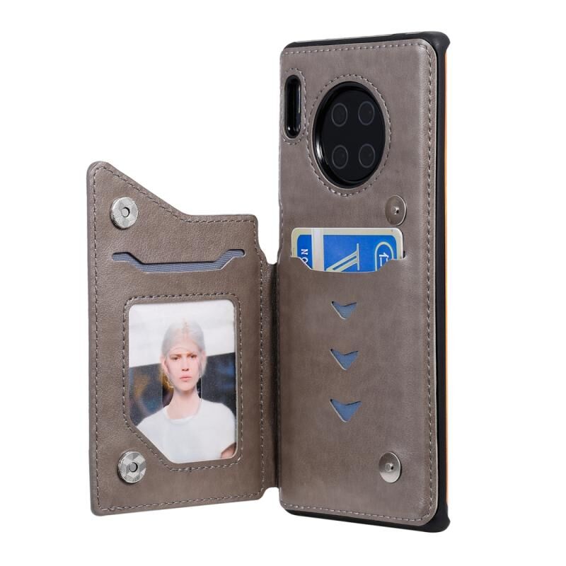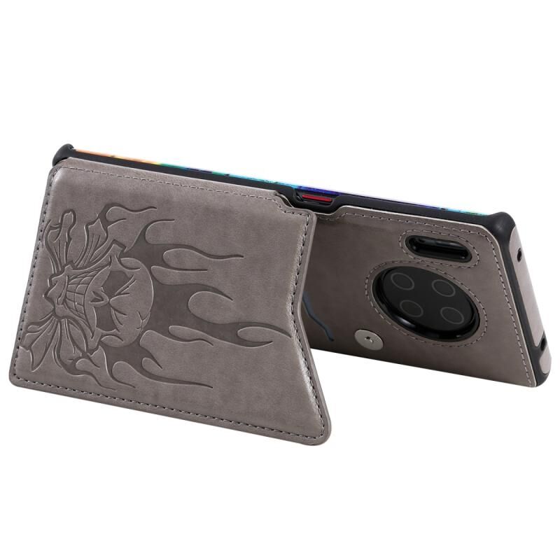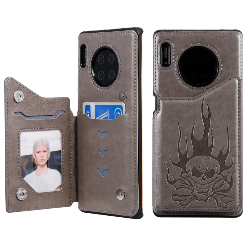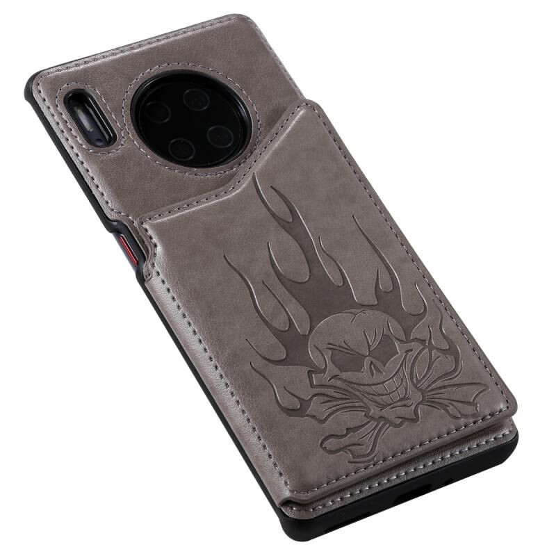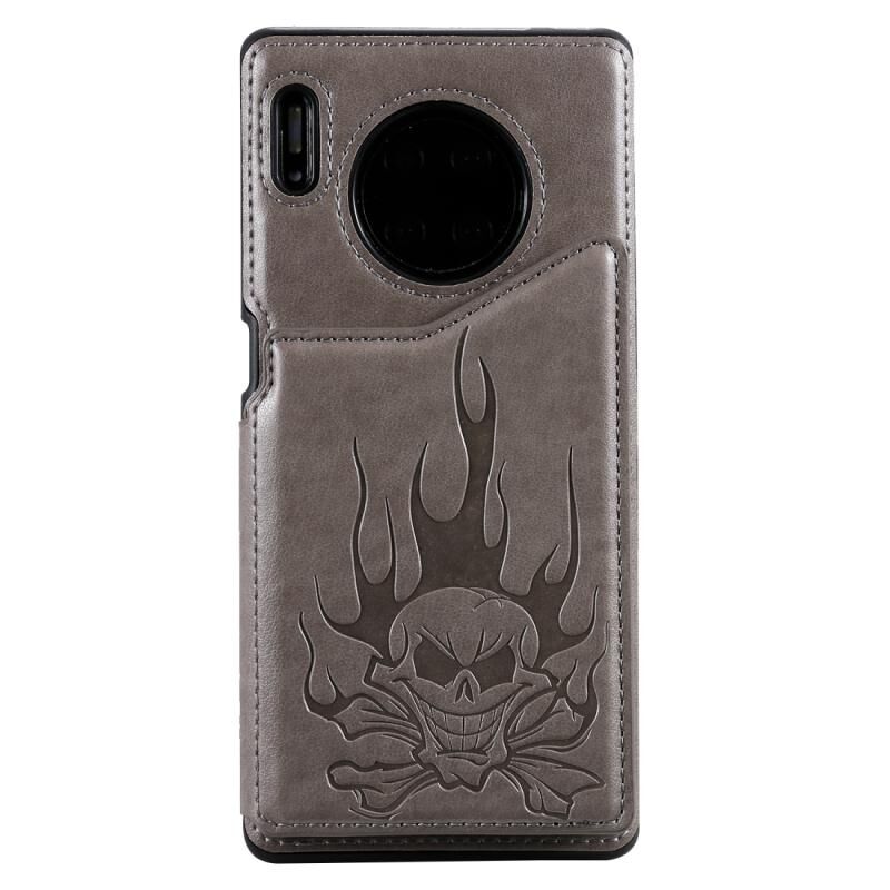 Θήκη προστασίας για Huawei Mate 30 Pro με ανάγλυφο σχέδιο κρανίου, αντικραδασμική, με βάση στήριξης & θήκες καρτών & πορτοφόλι (Γκρι)