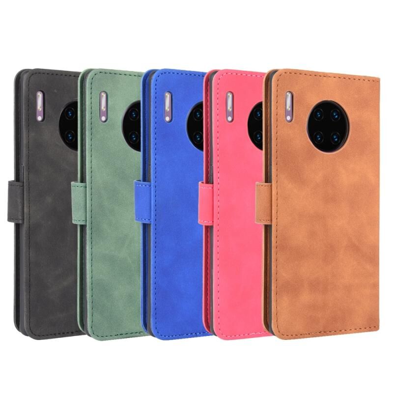 Θήκη Huawei Mate 30 Pro με μαγνητικό κούμπωμα, οριζόντια, με υφή μοσχαριού, από δέρμα PU, σε ροζ κόκκινο χρώμα, με βάση στήριξης και θήκες για κάρτες & πορτοφόλι. (Ροζέ κόκκινο)