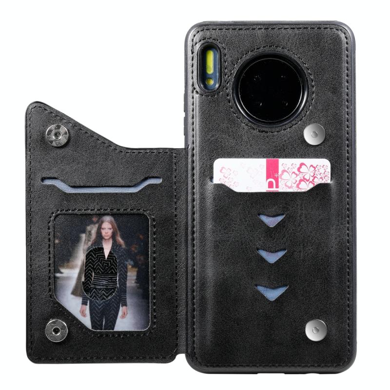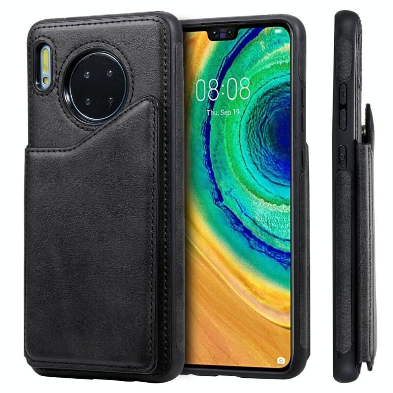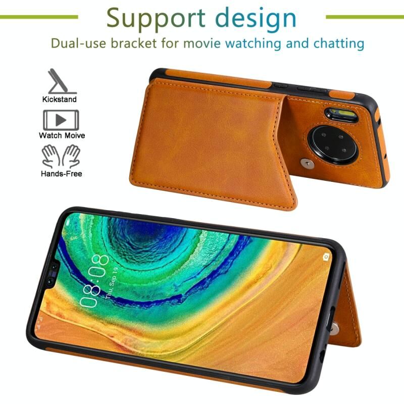 Θήκη προστασίας με υφή μοσχαριού, ανθεκτική στις κρούσεις, για Huawei Mate 30 με βάση στήριξης & θήκες καρτών & πλαίσιο (Χρυσορόδινο)