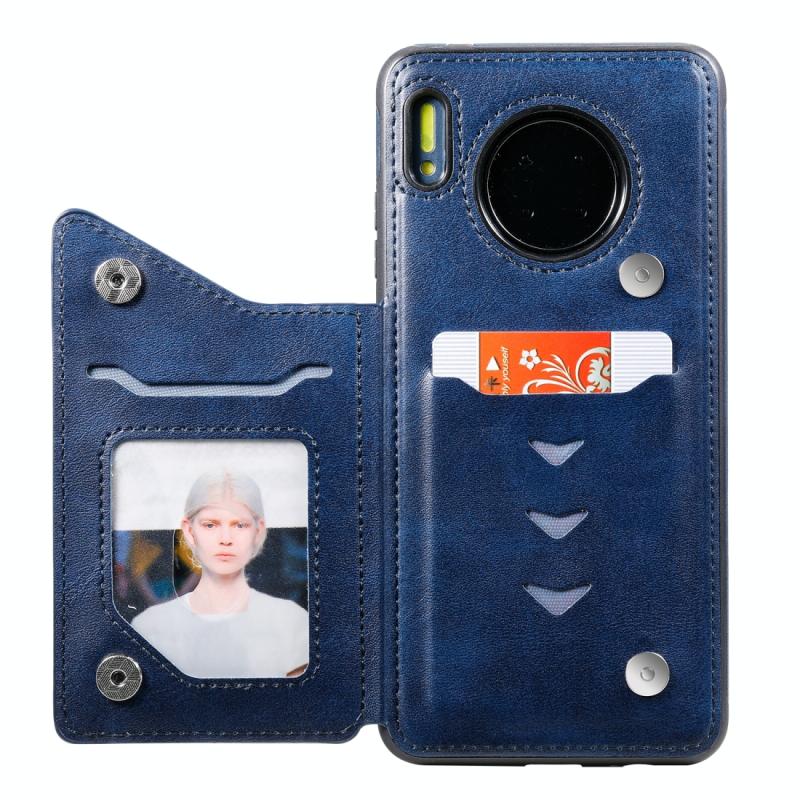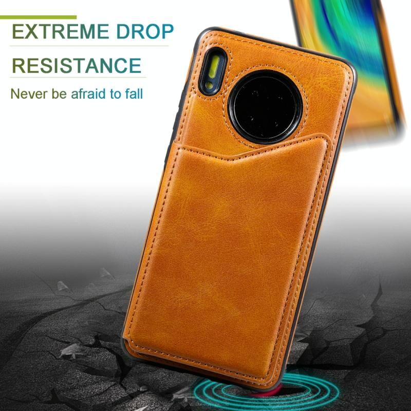 Θήκη προστασίας με υφή μοσχαριού, ανθεκτική στις κρούσεις, για Huawei Mate 30 με βάση στήριξης & θήκες καρτών & πλαίσιο (Χρυσορόδινο)