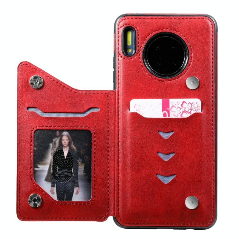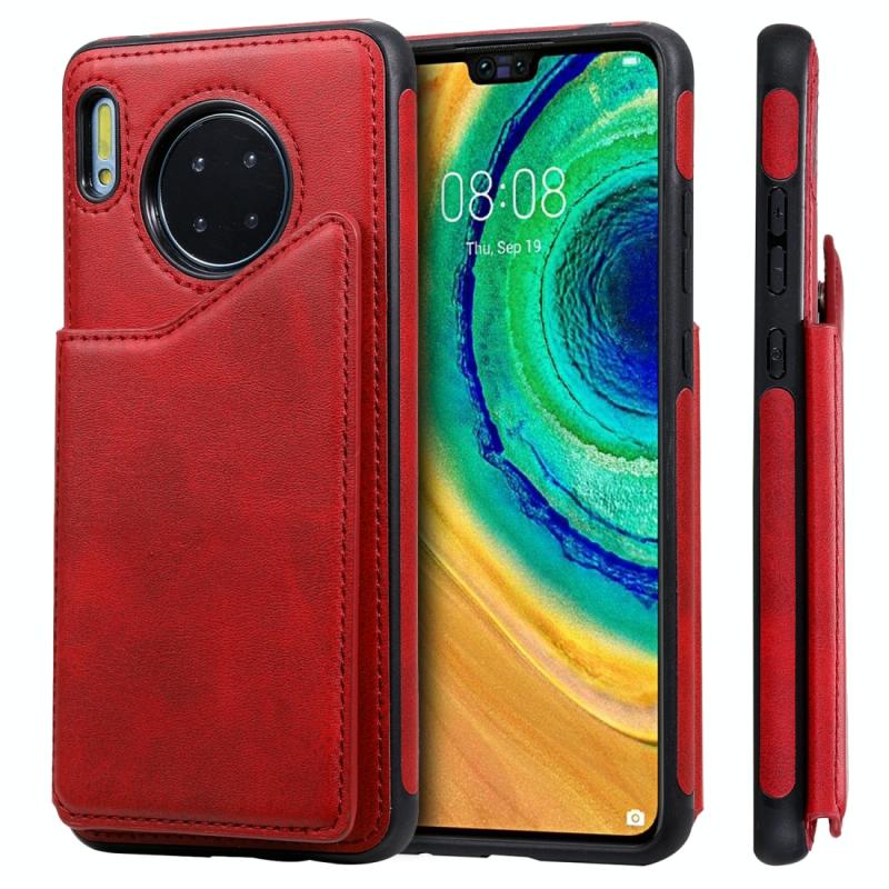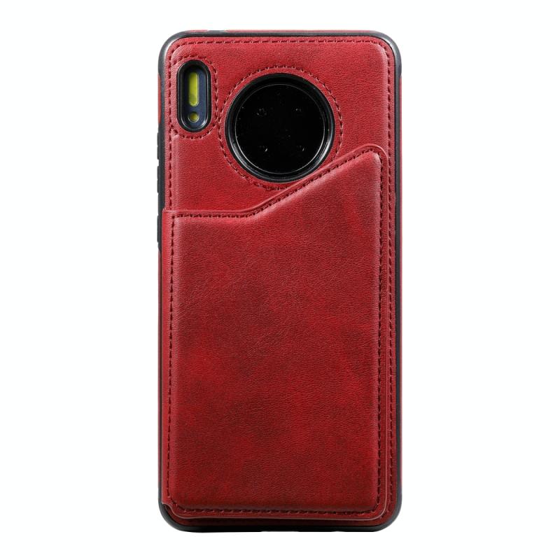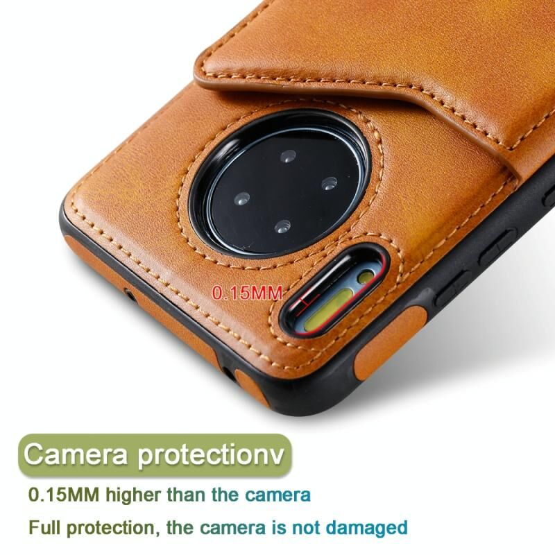 Θήκη προστασίας με υφή μοσχαριού, ανθεκτική στις κρούσεις, για Huawei Mate 30 με βάση στήριξης & θήκες καρτών & πλαίσιο (Χρυσορόδινο)