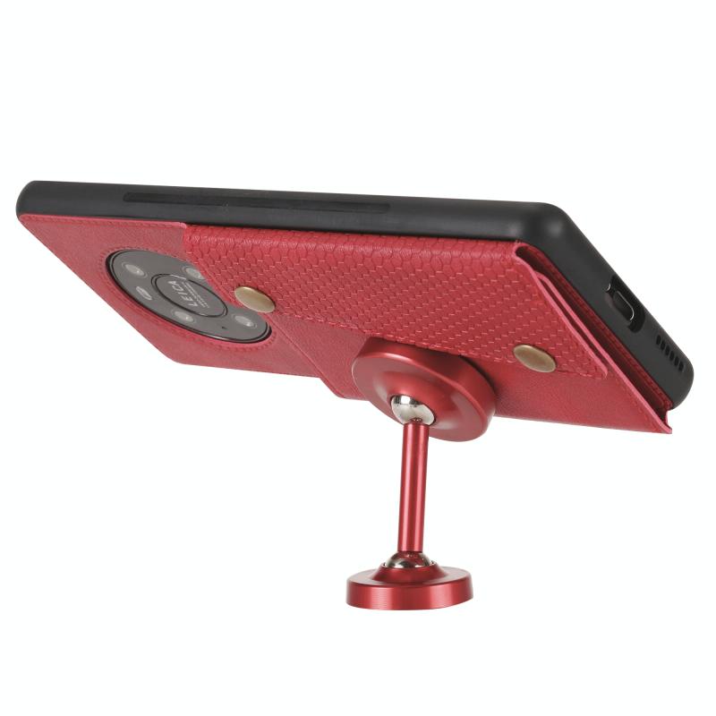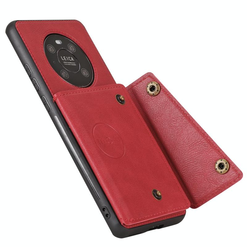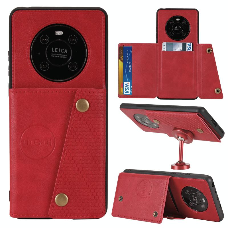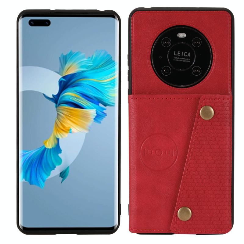 Θήκη προστασίας Huawei Mate 40 με διπλή αγκράφα, μαγνητική, αντικραδασμική από PU + TPU με υποδοχή κάρτας & βάση (Κόκκινο)