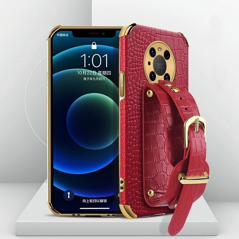 Θήκη για Huawei Mate 40, Ηλεκτρολυτική TPU με Δερμάτινη Υφή Κροκόδειλου και Λουρί Καρπού (Μαύρο)