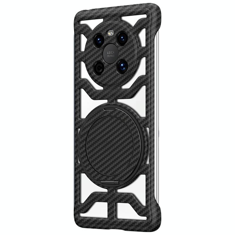 For Huawei Mate 40 Hollow Carbon Fiber Rotating Bracket MagSafe Phone Case(Black)