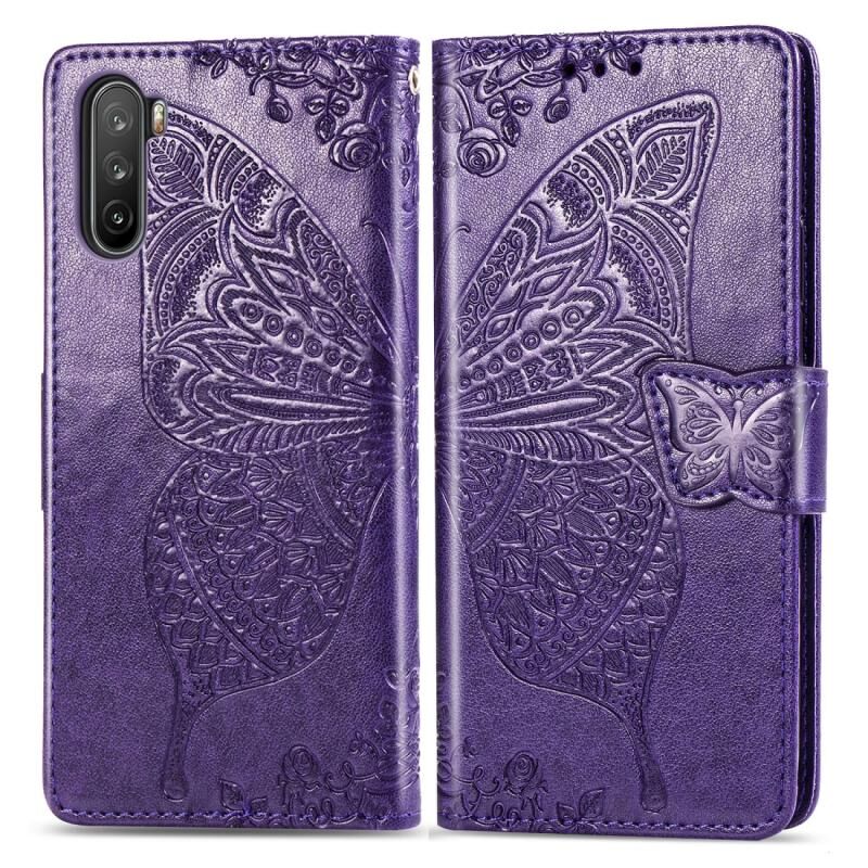 Θήκη δέρματος οριζόντιας αναδίπλωσης για Huawei Mate 40 Lite / Maimang 9 με ανάγλυφο σχέδιο πεταλούδας και λουλουδιών, με βάση στήριξης, θήκες καρτών, πορτοφόλι και κορδόνι (Σκούρο μωβ)