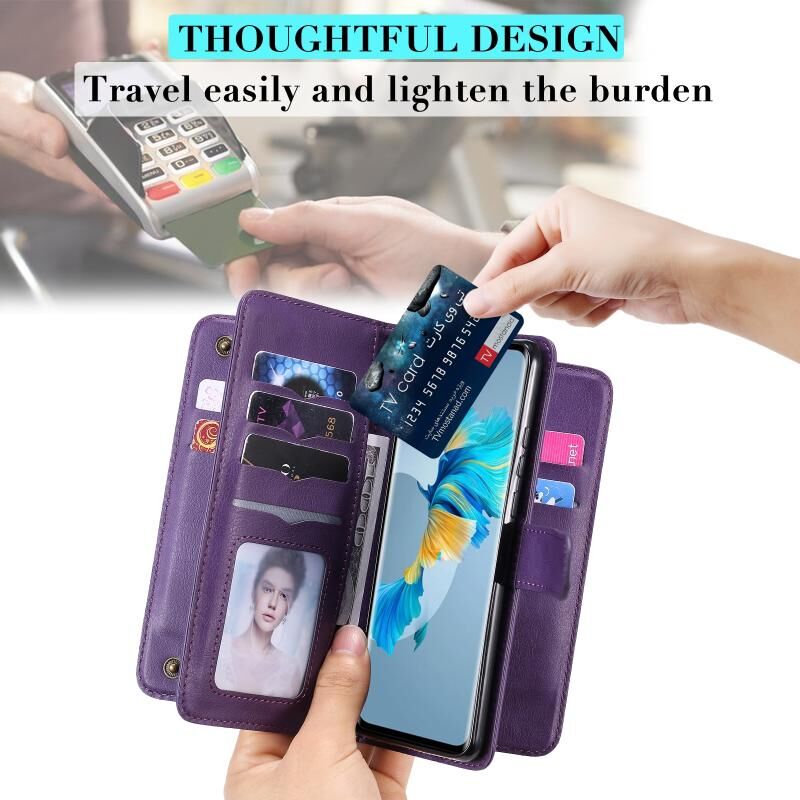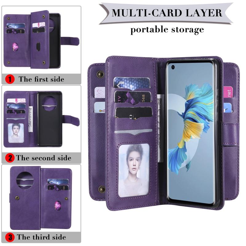 Θήκη Huawei Mate 40 Πολυλειτουργική Μαγνητική Θήκη από Χαλκό με Οριζόντιο Άνοιγμα, Μονόχρωμη Δερμάτινη με 10 Θήκες για Κάρτες & Πορτοφόλι & Στήριξη & Κορνίζα Φωτογραφιών (Σκούρο μπλε)