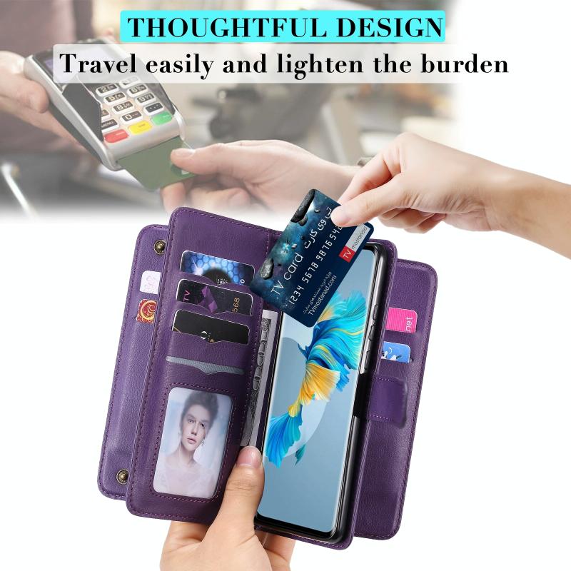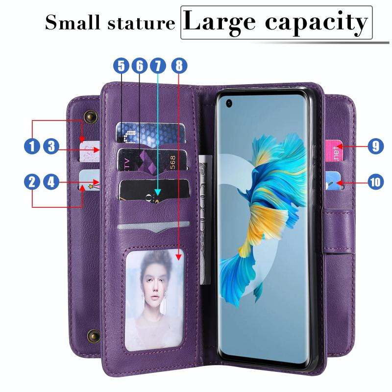 Θήκη Huawei Mate 40 Πολυλειτουργική Μαγνητική Θήκη από Χαλκό με Οριζόντιο Άνοιγμα, Μονόχρωμη Δερμάτινη με 10 Θήκες για Κάρτες & Πορτοφόλι & Στήριξη & Κορνίζα Φωτογραφιών (Σκούρο πράσινο)