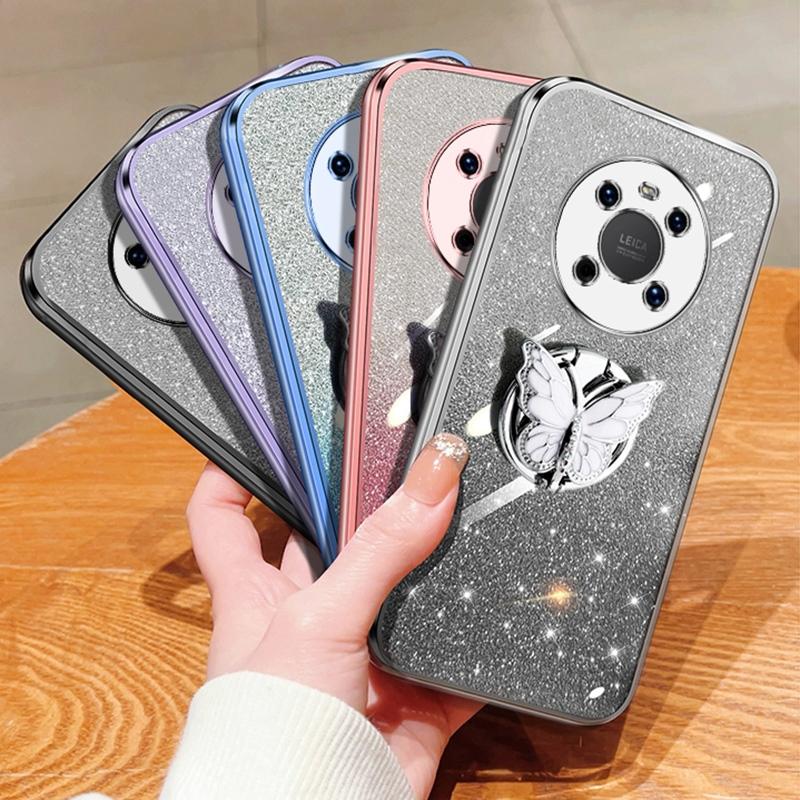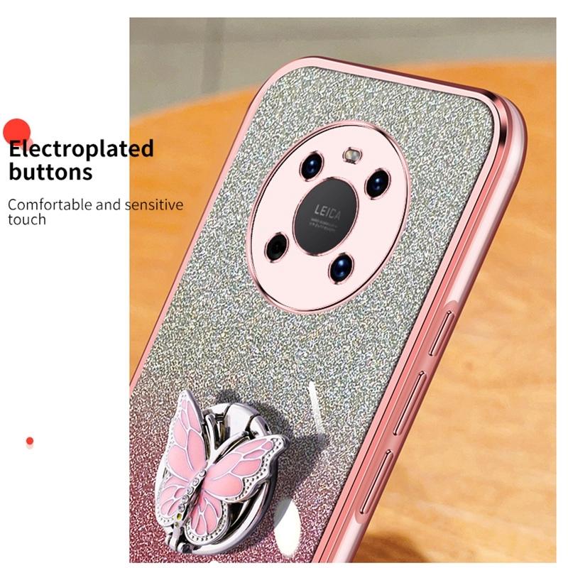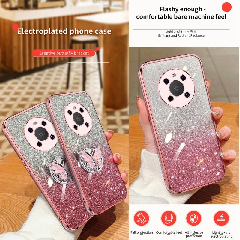 For Huawei Mate 40 Plated Gradient Glitter Butterfly Holder TPU Phone Case(Pink)