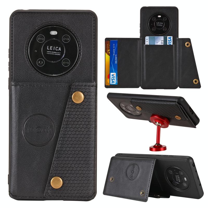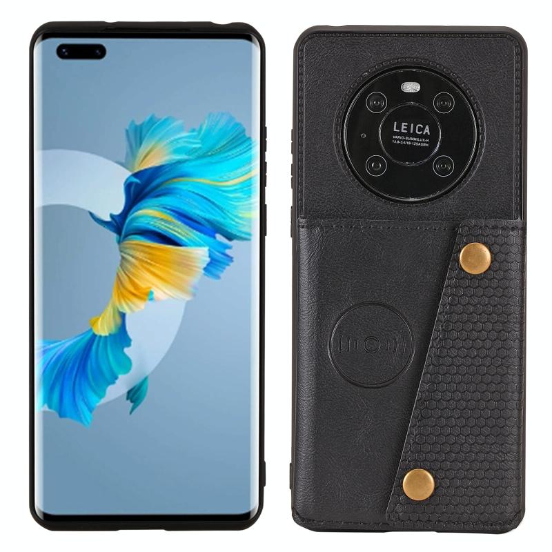 Θήκη προστασίας Huawei Mate 40 Pro με μαγνητική σύνδεση, διπλής ασφάλισης από PU + TPU, ανθεκτική σε κρούσεις με υποδοχή κάρτας & βάση στήριξης (Μαύρο)