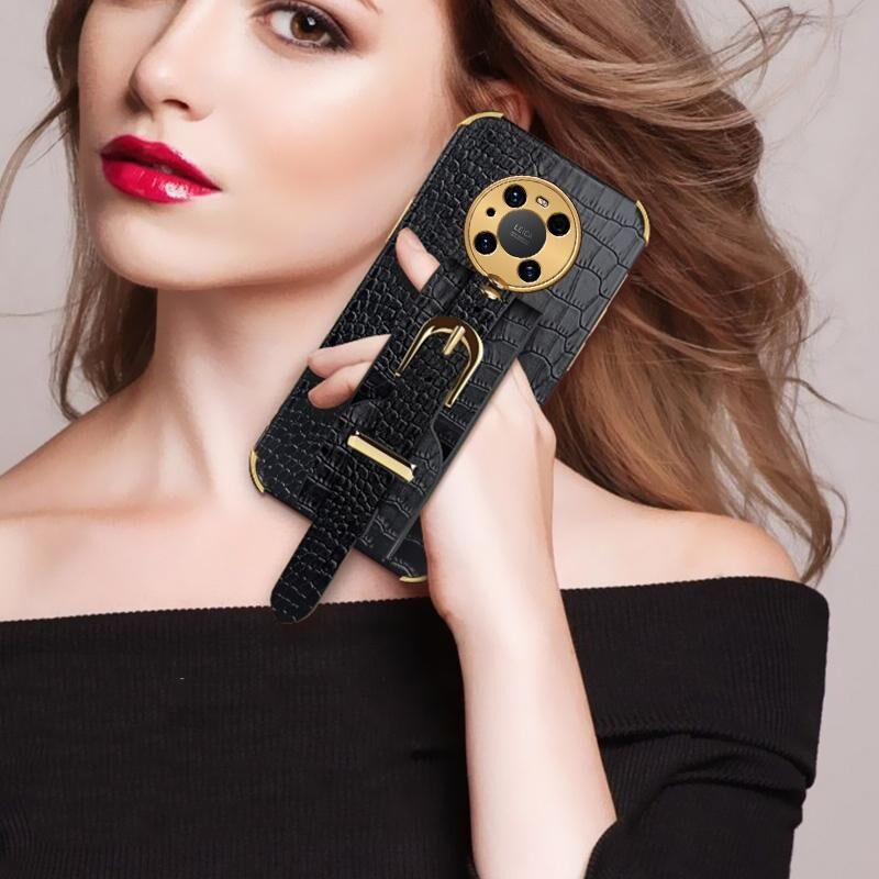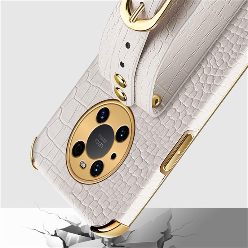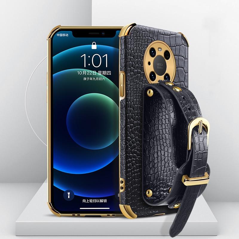 Θήκη για Huawei Mate 40 Pro με Επικάλυψη TPU, Δερμάτινη με Υφή Κροκόδειλου και Λουρί Καρπού (Μαύρο)