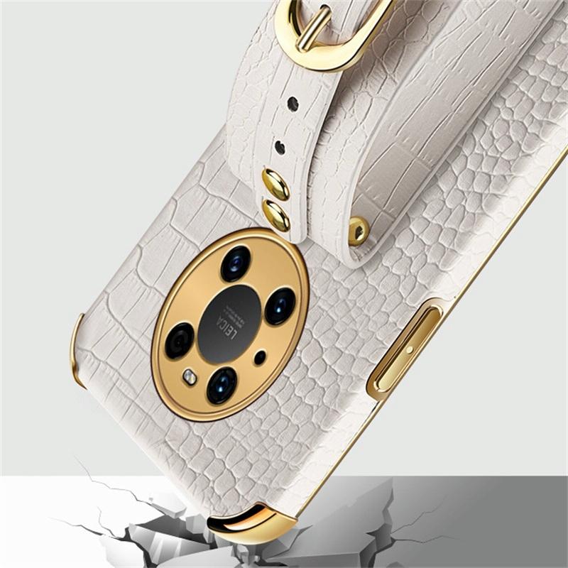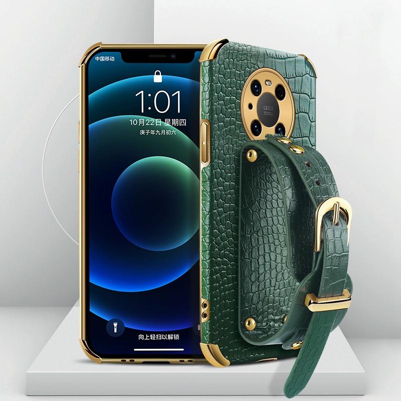 Θήκη για Huawei Mate 40 Pro με Επικάλυψη TPU, Δερμάτινη με Υφή Κροκόδειλου και Λουρί Καρπού (πράσινο)