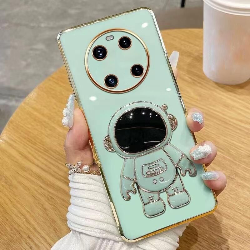Θήκη τηλεφώνου για Huawei Mate 40 Pro με ηλεκτρολυτική επίστρωση και στήριγμα αστροναύτη (Ροζ)
