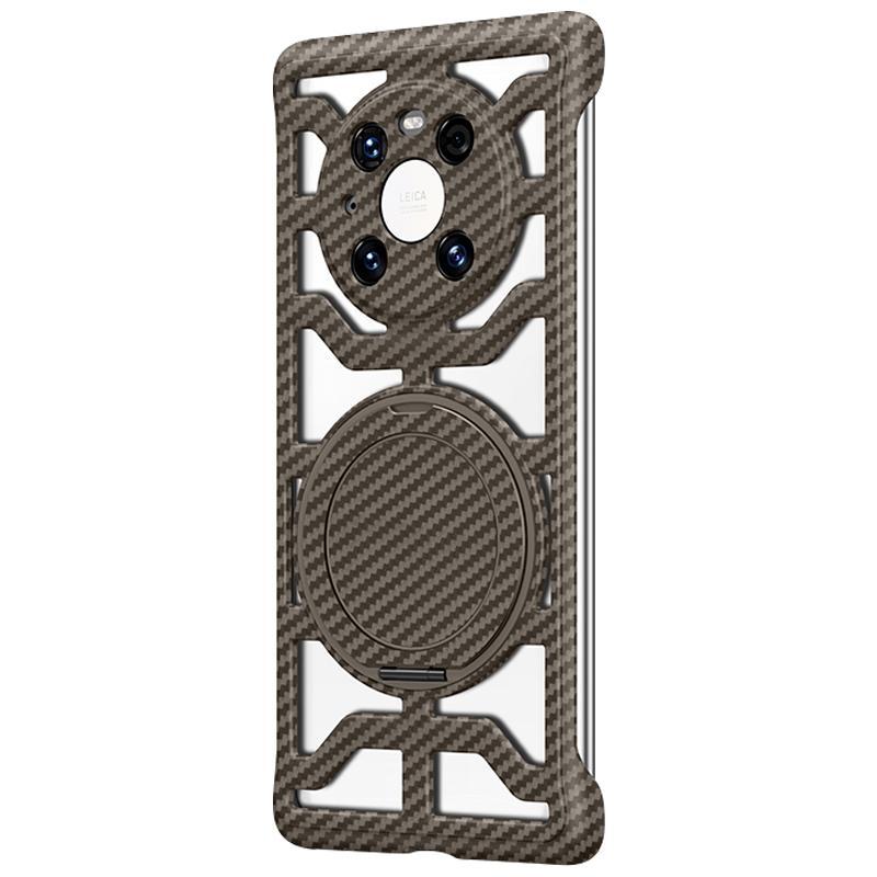 For Huawei Mate 40 Pro Hollow Carbon Fiber Rotating Bracket MagSafe Phone Case(Gold)