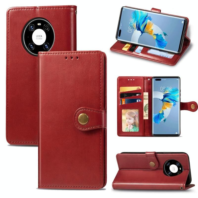 Για Huawei Mate 40 Pro Ρετρό στερεό χρώμα δερμάτινη θήκη τηλεφώνου με αγκράφα & κορνίζα φωτογραφιών & υποδοχή κάρτας & πορτοφόλι & λειτουργία στάσης (κόκκινο)