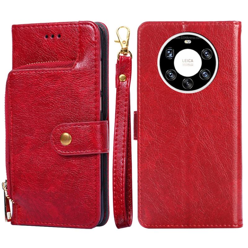 Θήκη Huawei Mate 40 Pro+ Δερμάτινη Οριζόντια Flip με Φερμουάρ, PU + TPU, με Θήκη, Θήκη Καρτών, Πορτοφόλι & Λουρί (Κόκκινο)