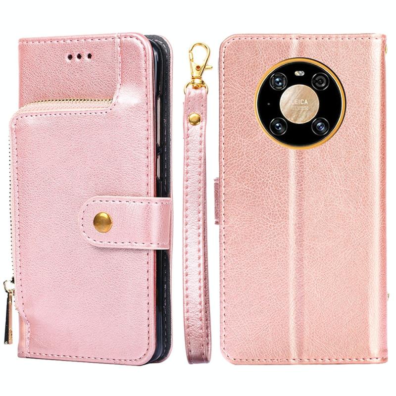 For Huawei Mate 40 Pro Zipper Bag PU + TPU Horizontal Flip Leather Case with Holder & Card Slot & Wallet & Lanyard(Rose Gold)
