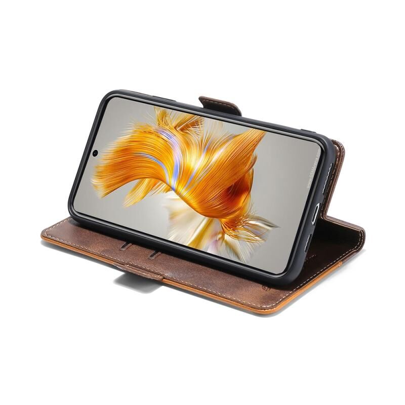 Για Huawei Mate 50 Αντίθετο χρώμα πλευρά πόρπη δερμάτινη θήκη τηλεφώνου (ανοιχτό καφέ + πράσινο)
