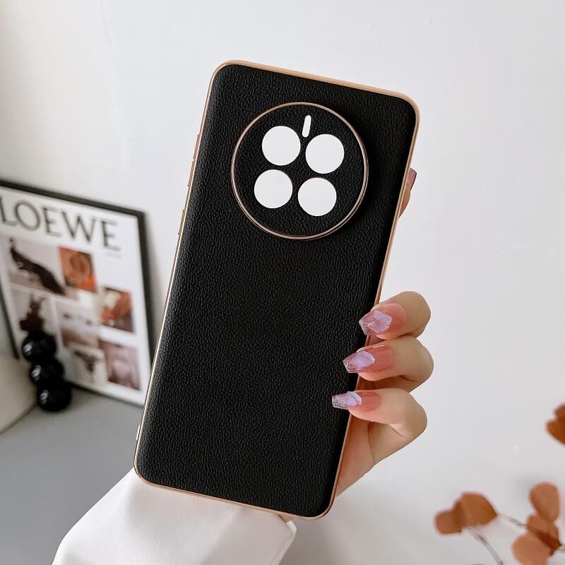 Θήκη τηλεφώνου Huawei Mate 50 από γνήσιο δέρμα Luolai με ηλεκτρολυτική επίστρωση (Μαύρο)