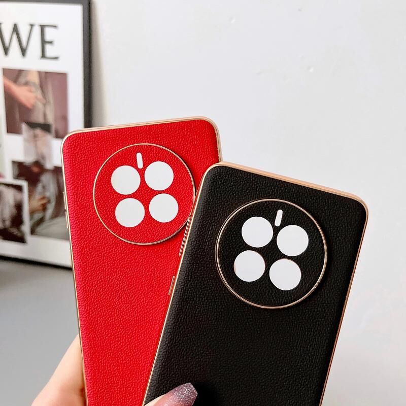Θήκη τηλεφώνου Huawei Mate 50 από γνήσιο δέρμα Luolai με ηλεκτρολυτική επίστρωση (Μαύρο)
