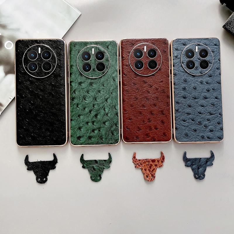 Θήκη τηλεφώνου Huawei Mate 50 από γνήσιο δέρμα στρουθοκάμηλου με νανοεπίστρωση (Πράσινο)