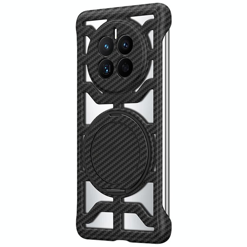For Huawei Mate 50 Hollow Carbon Fiber Rotating Bracket MagSafe Phone Case(Black)