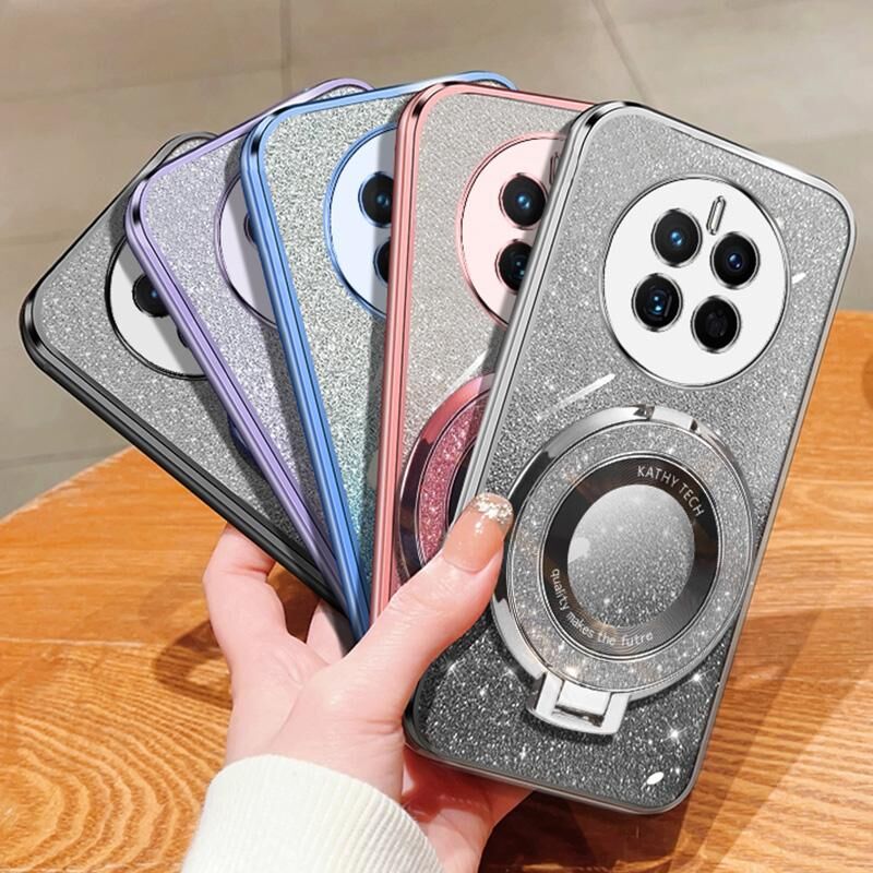 Για το Huawei Mate 50 / Mate 50E Επιμεταλλωμένο βαθμιδωτή Glitter στρογγυλή θήκη TPU τηλέφωνο κάτοχος (ροζ)