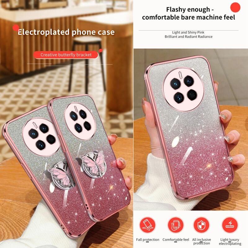 Θήκη κινητού τηλεφώνου Huawei Mate 50 με επιμετάλλωση, διαβαθμισμένη λάμψη, σχέδιο πεταλούδας, από TPU (Ροζ)