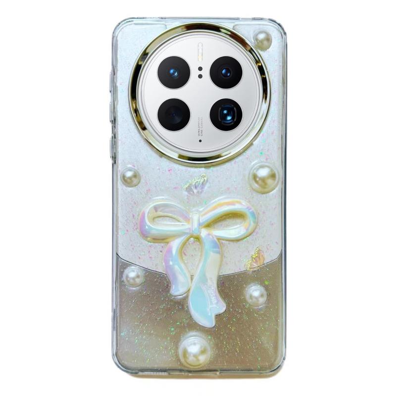 For Huawei Mate 50 Pro 3D Bow Pearl Love Flower TPU Phone Case(Butterfly Love)