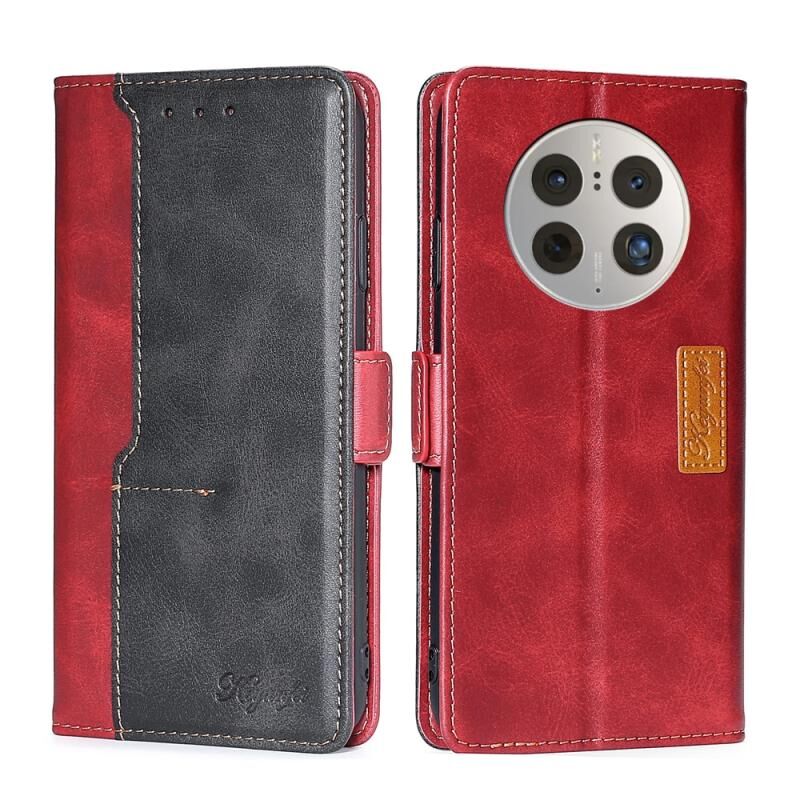 Για Huawei Mate 50 Pro αντίθεση χρώμα πλευρά πόρπη δερμάτινη θήκη τηλεφώνου υπόθεση (κόκκινο + μαύρο)