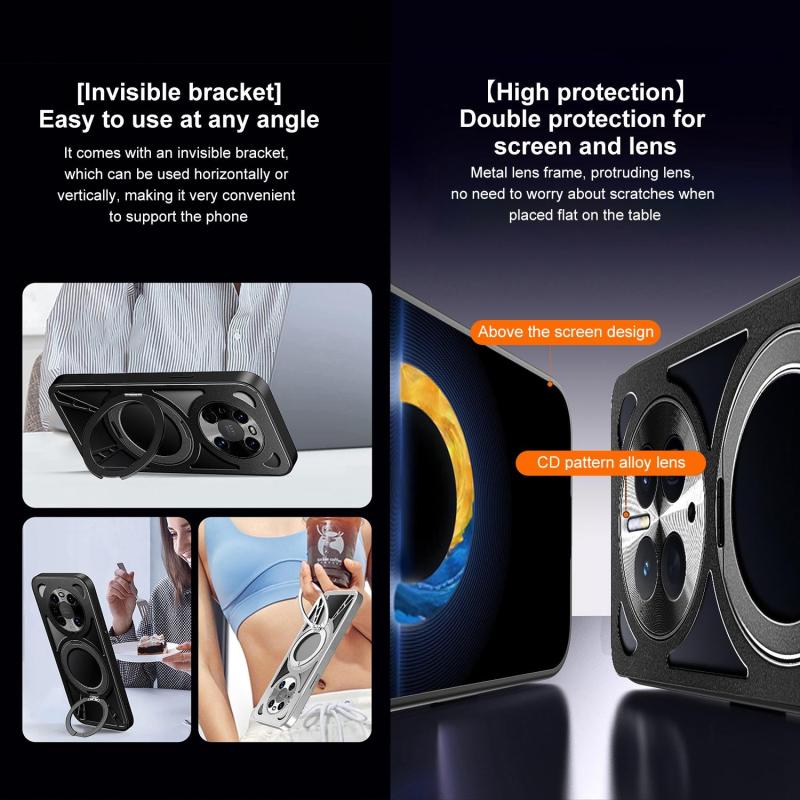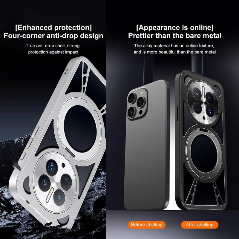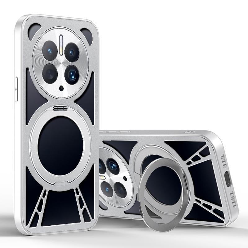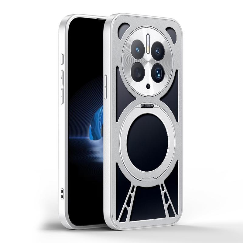 For Huawei Mate 50 Pro Cooling Hollow Metal Holder MagSafe Phone Case(Silver)