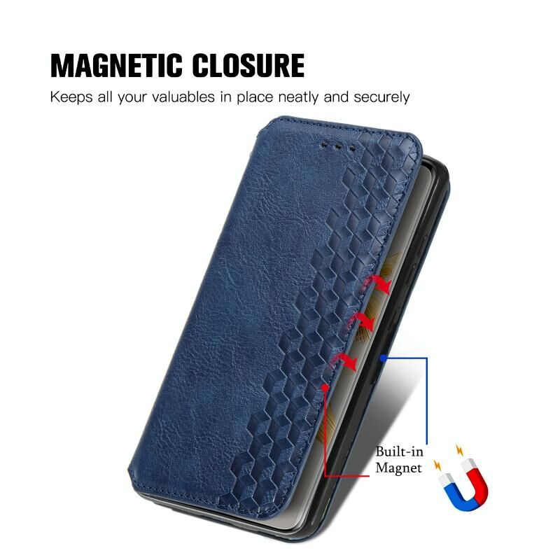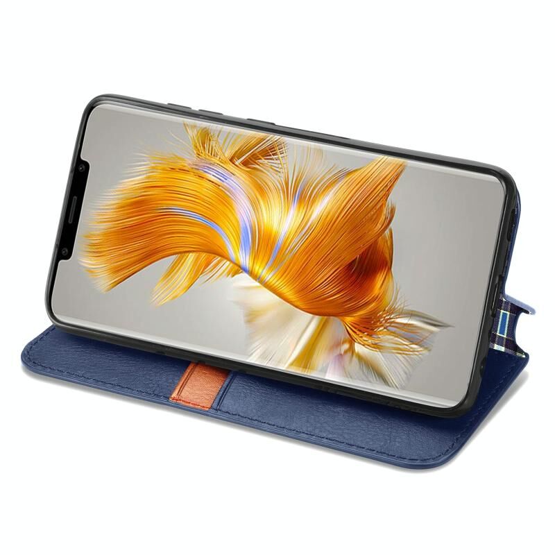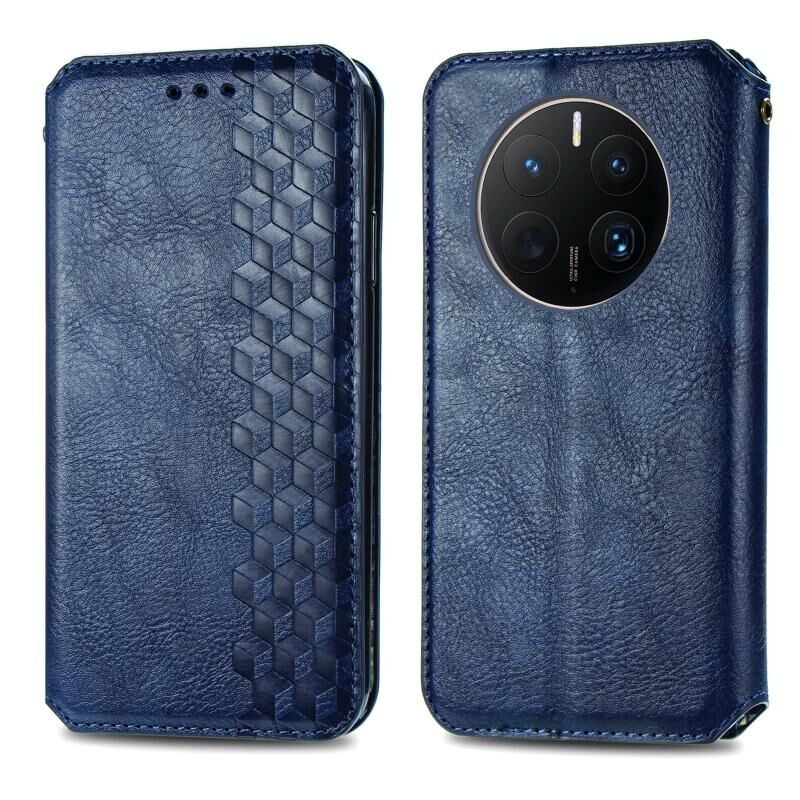 Για το Huawei Mate 50 Pro Cubic Grid Pressed μαγνητική δερμάτινη θήκη τηλεφώνου (μπλε)