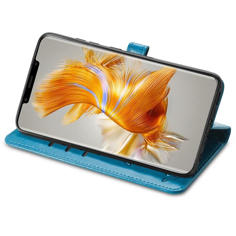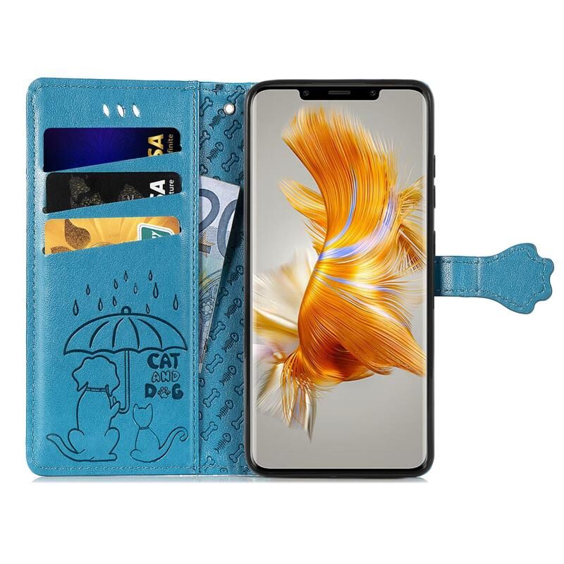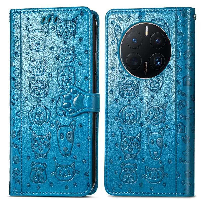 For Huawei Mate 50 Pro Cute Cat and Dog Embossed Leather Phone Case(Blue)