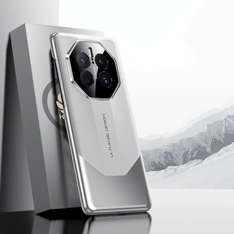Για Huawei Mate 50 Pro Electroplated απομίμηση Ultimate Design PC + δέρμα τηλέφωνο υπόθεση (ασημί)