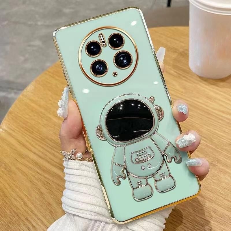 Θήκη τηλεφώνου για Huawei Mate 50 Pro με επιμετάλλωση και στήριγμα αστροναύτη (πράσινο)