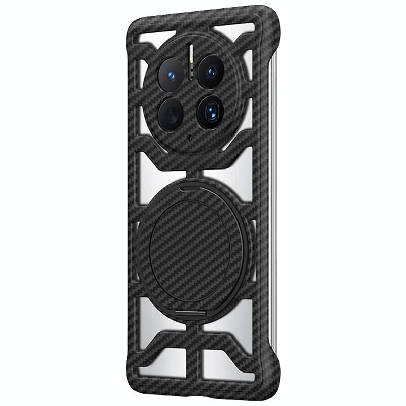 For Huawei Mate 50 Pro Hollow Carbon Fiber Rotating Bracket MagSafe Phone Case(Black)