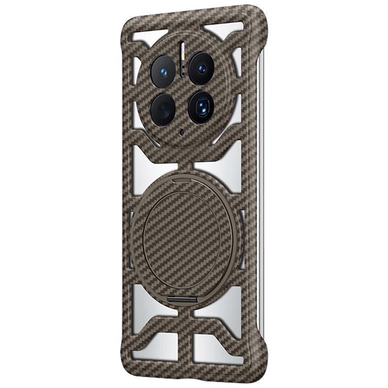 For Huawei Mate 50 Pro Hollow Carbon Fiber Rotating Bracket MagSafe Phone Case(Gold)