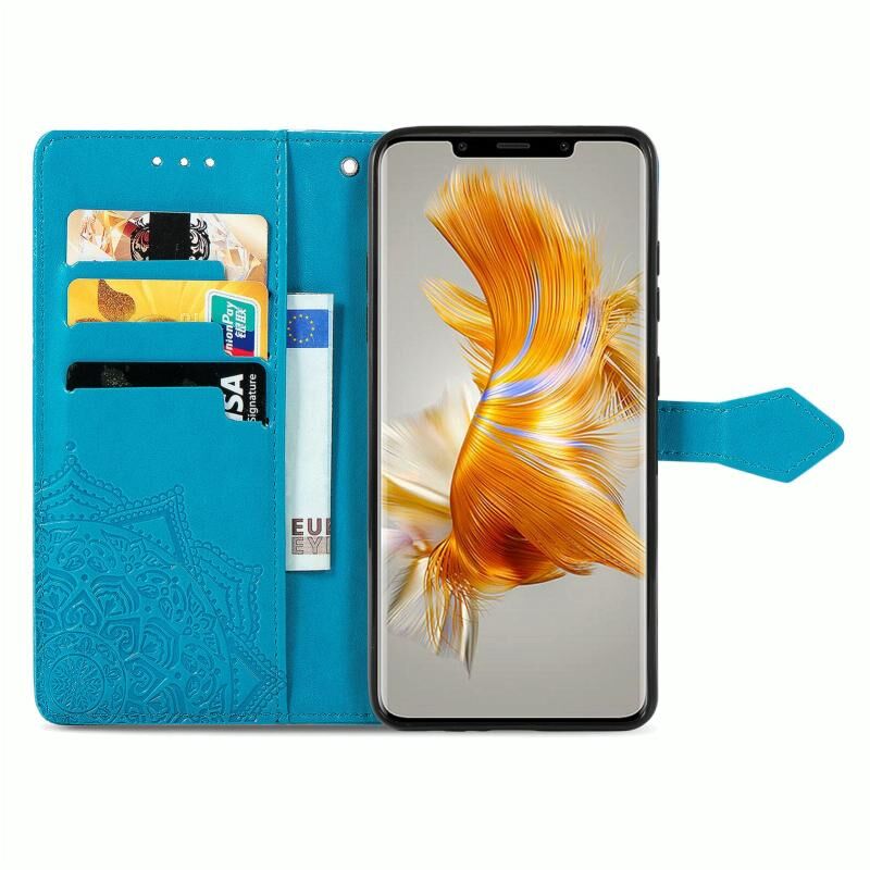 Για Huawei Mate 50 Pro Mandala λουλούδι ανάγλυφο δερμάτινη θήκη τηλεφώνου (μπλε)