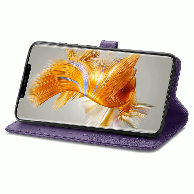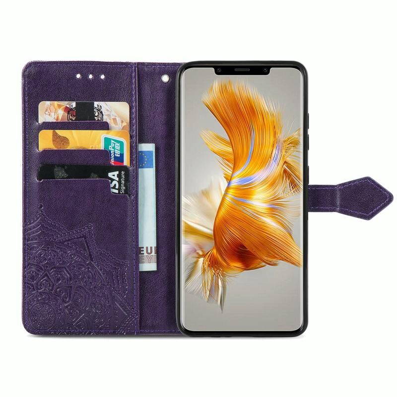 Για Huawei Mate 50 Pro Mandala λουλούδι ανάγλυφο δερμάτινη θήκη τηλεφώνου (μωβ)
