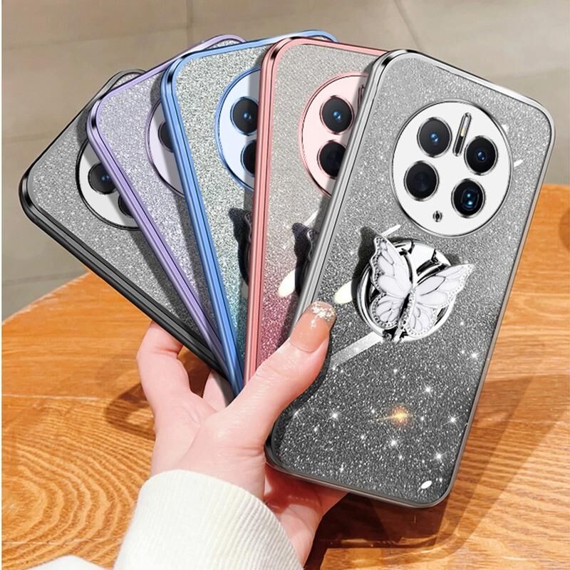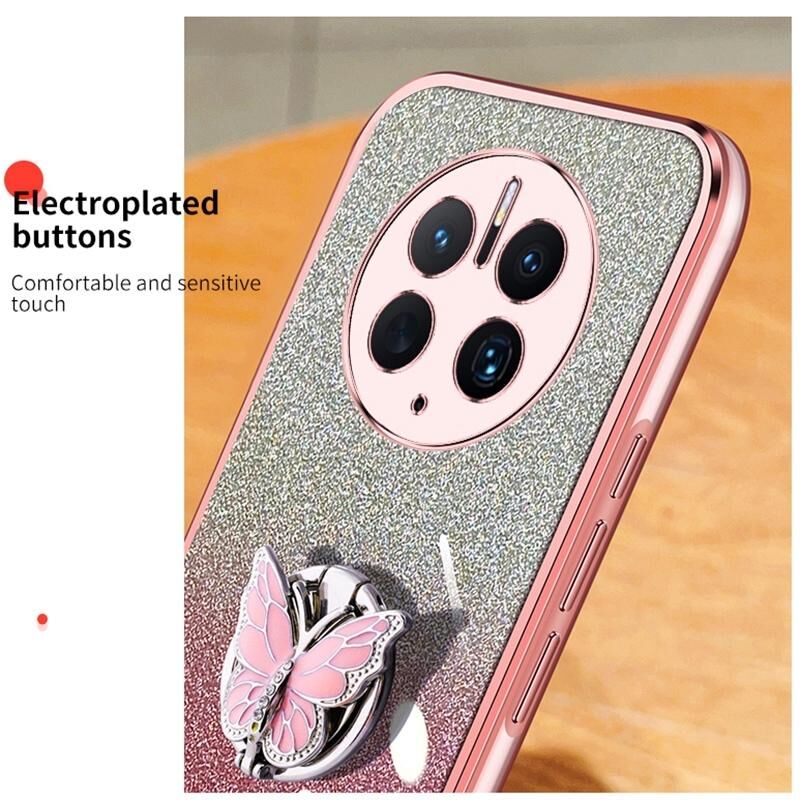 Θήκη κινητού τηλεφώνου Huawei Mate 50 Pro Επικαλυμμένη Διαβαθμισμένη Λάμψη Πεταλούδα TPU (Ροζ)