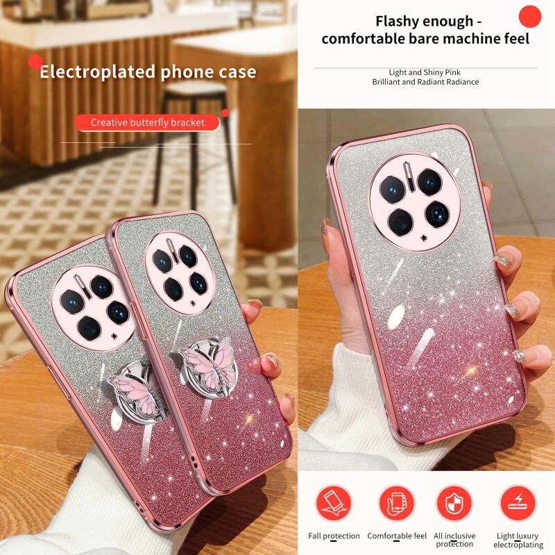 Θήκη κινητού τηλεφώνου Huawei Mate 50 Pro Επικαλυμμένη Διαβαθμισμένη Λάμψη Πεταλούδα TPU (Ροζ)