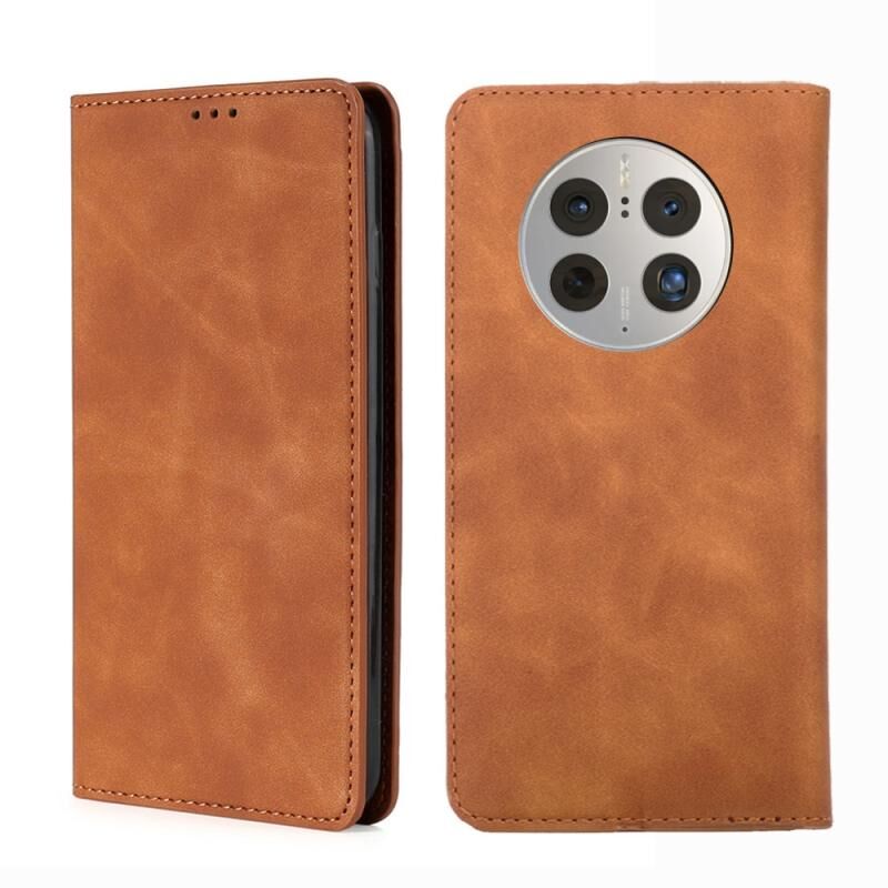 Για το Huawei Mate 50 Pro Skin Feel Magnetic Horizontal Flip Leather Phone Case (Light Brown)