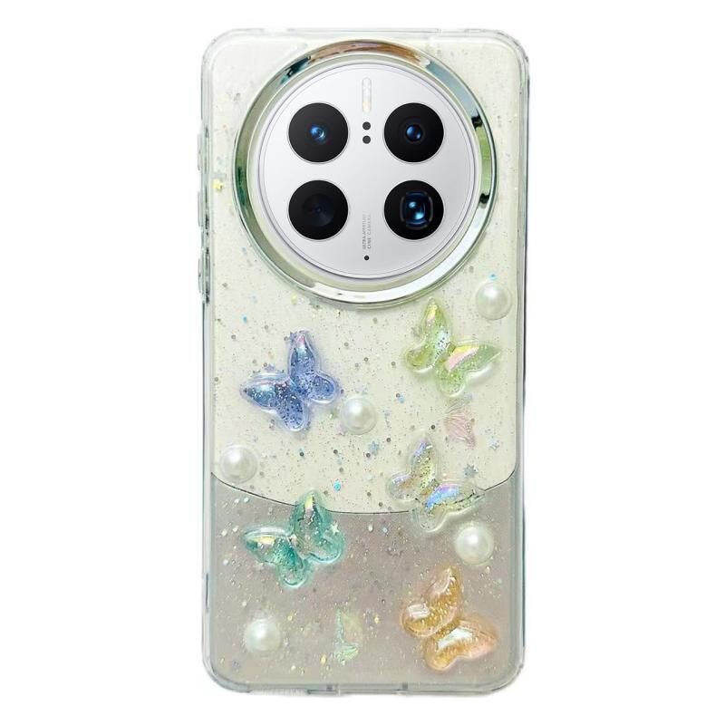Θήκη τηλεφώνου Huawei Mate 50 Pro TPU με τρισδιάστατο πολύχρωμο κρυστάλλινο σχέδιο πεταλούδας (Πέρλα Πεταλούδας)