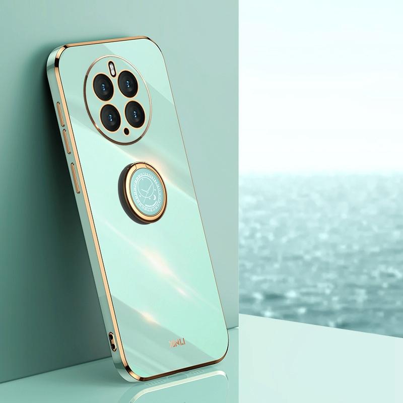 Θήκη κινητού Huawei Mate 50 Pro XINLI με ευθείες άκρες, ηλεκτρολυτική επίστρωση TPU και δακτύλιο στήριξης (Μέντας Πράσινο)