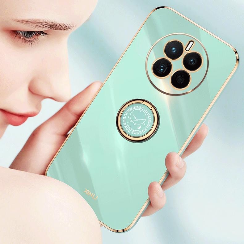 Θήκη κινητού Huawei Mate 50 Pro XINLI με ευθείες άκρες, ηλεκτρολυτική επίστρωση TPU και δακτύλιο στήριξης (Μέντας Πράσινο)