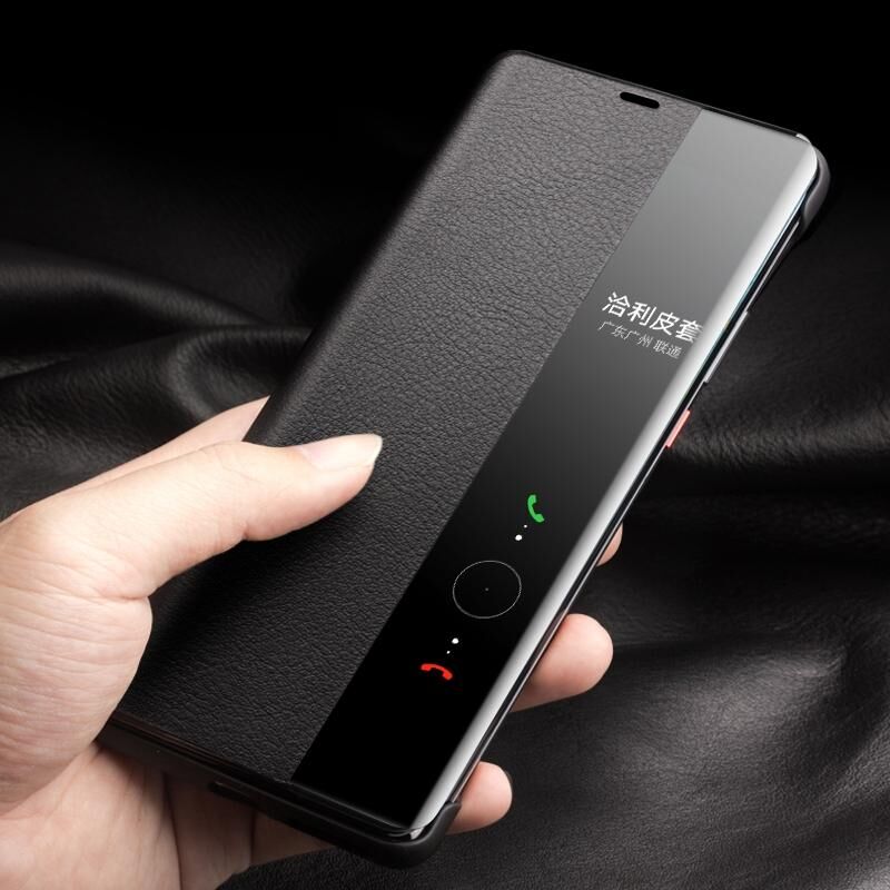 Θήκη κινητού τηλεφώνου QIALINO από γνήσιο δέρμα με παράθυρο πλευρικής όψης για Huawei Mate 50 (Μαύρο) (Κόκκινο)