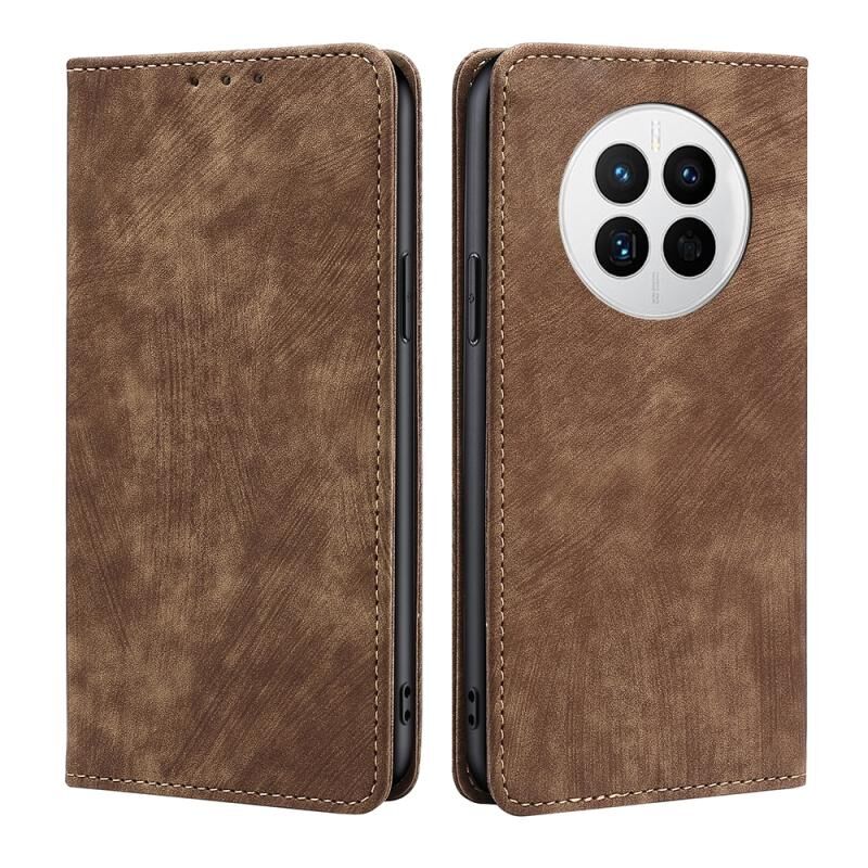 Για Huawei Mate 50 RFID Anti-theft Brush Μαγνητική θήκη τηλεφώνου δερμάτινη (Καφέ)