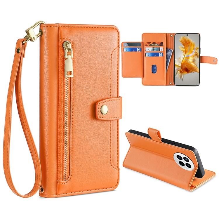 Θήκη τηλεφώνου Huawei Mate 50 με υφή προβάτου, δερμάτινη, χιαστί με φερμουάρ (Μαύρο)
