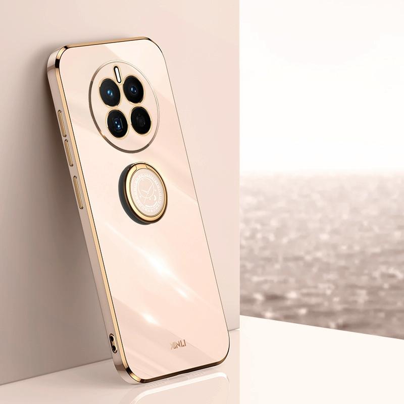 Θήκη τηλεφώνου Huawei Mate 50 XINLI με ευθείες άκρες, ηλεκτρολυτική επίστρωση TPU και δακτύλιο στήριξης (ρόζ)