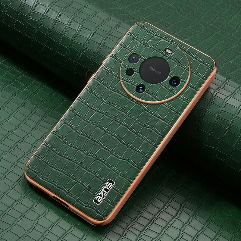 Θήκη τηλεφώνου πλήρους κάλυψης με ηλεκτρολυτικό πλαίσιο και υφή κροκόδειλου για Huawei Mate 60 / 60 Pro+ (Μαύρο) (πράσινο)