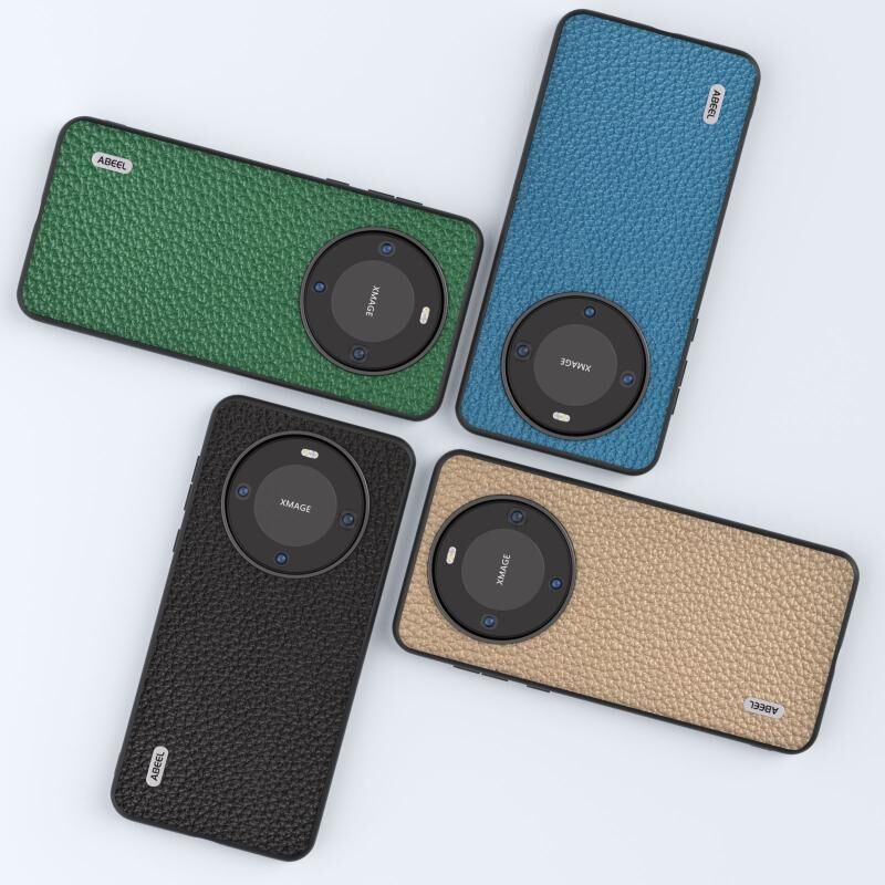 Θήκη τηλεφώνου από γνήσιο δέρμα Huawei Mate 60 ABEEL με υφή λυτσί (Μαύρο)